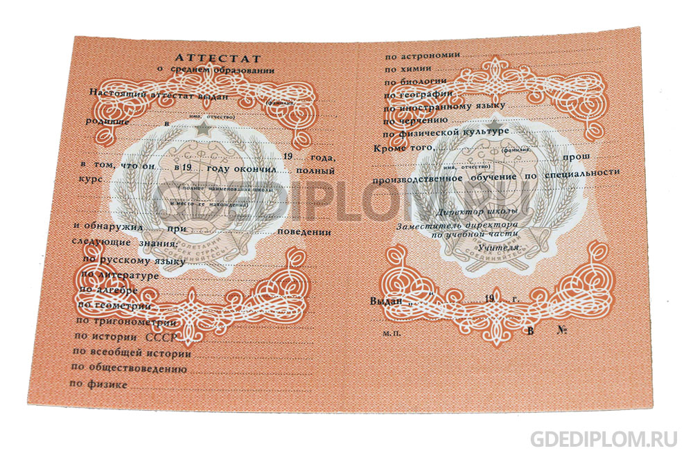 Аттестат за 11 класс СССР до 1993 Качество: оригинальный Гознак Подробнее |